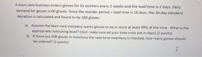 Solved A Lawn Care Business Orders Gloves For Its Workers Chegg Com